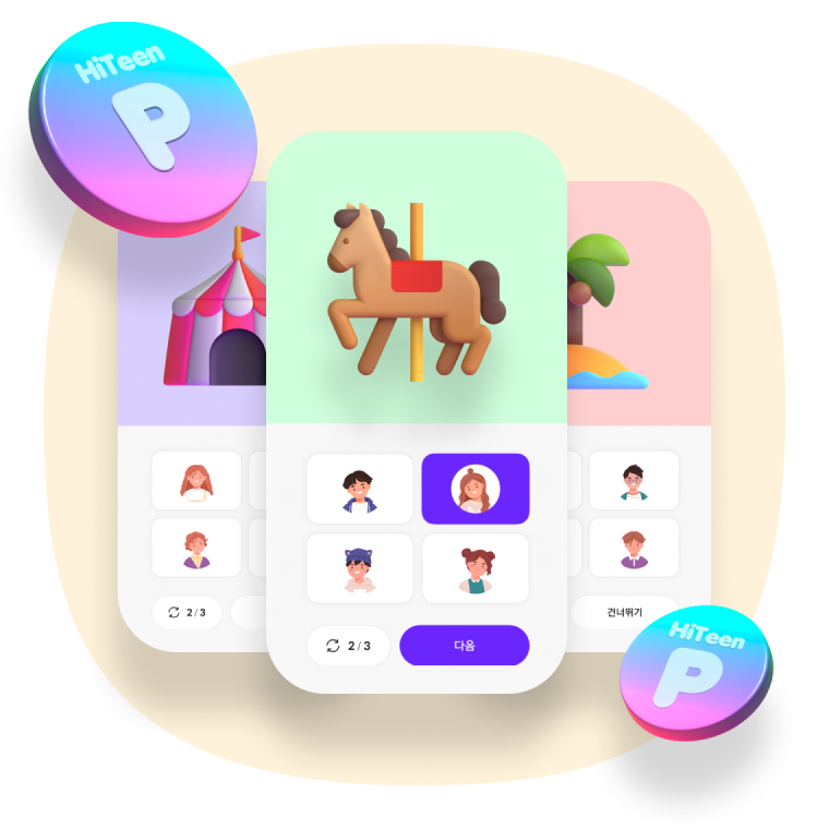 질문에 가장 맞는 친구를 선택하면 포인트도 얻을 수 있어
